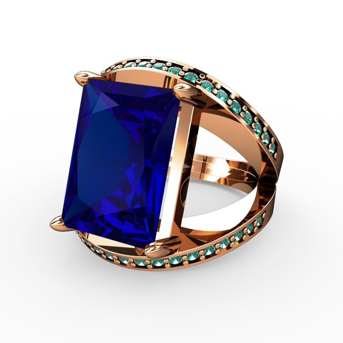 Lab safir ve yeşil kuvars 18 ayar rose altın yüzük