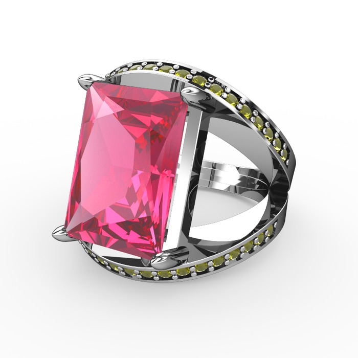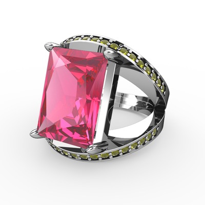 Pembe kuvars ve peridot 14 ayar beyaz altın yüzük