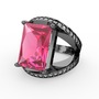 Pembe kuvars ve pırlanta 925 ayar siyah rodyum kaplama gümüş yüzük (0.6 karat)