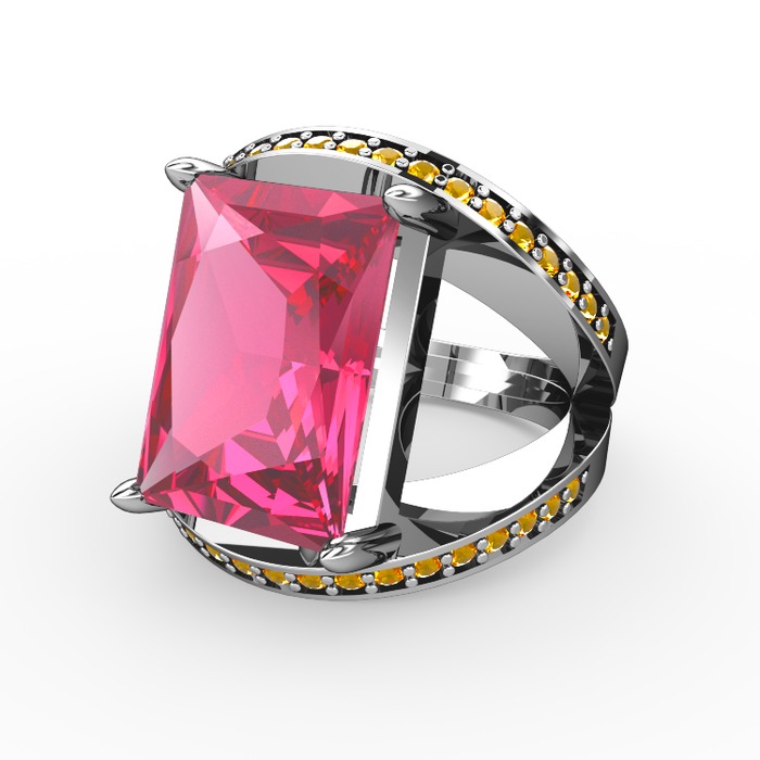 Pembe kuvars ve sitrin 925 ayar gümüş yüzük