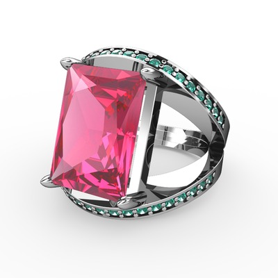 Pembe kuvars ve yeşil kuvars 14 ayar beyaz altın yüzük