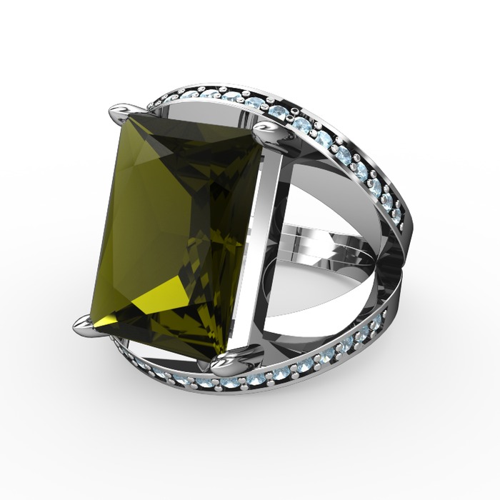 Peridot ve akuamarin 18 ayar beyaz altın yüzük