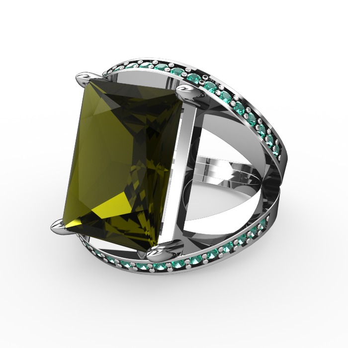 Peridot ve yeşil kuvars 18 ayar beyaz altın yüzük