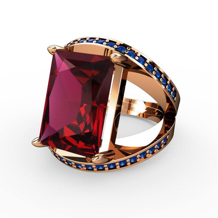 Rodolit garnet ve lab safir 925 ayar rose altın kaplama gümüş yüzük