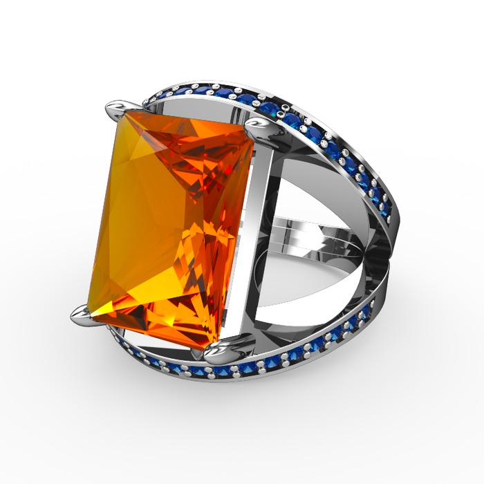 Sitrin ve lab safir 18 ayar beyaz altın yüzük