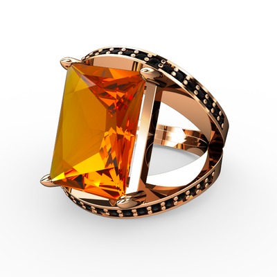 Sitrin ve siyah zirkon 18 ayar rose altın yüzük