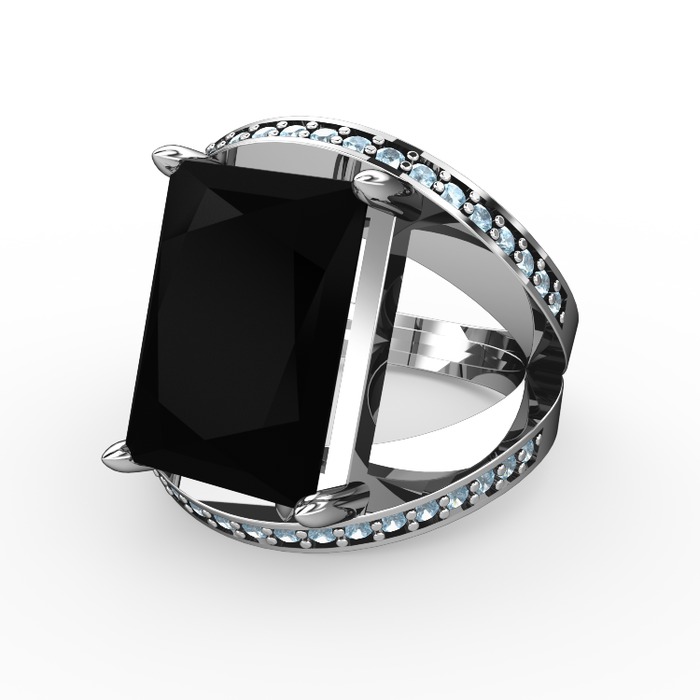 Siyah zirkon ve akuamarin 925 ayar gümüş yüzük