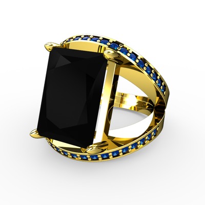 Siyah zirkon ve lab safir 8 ayar altın yüzük