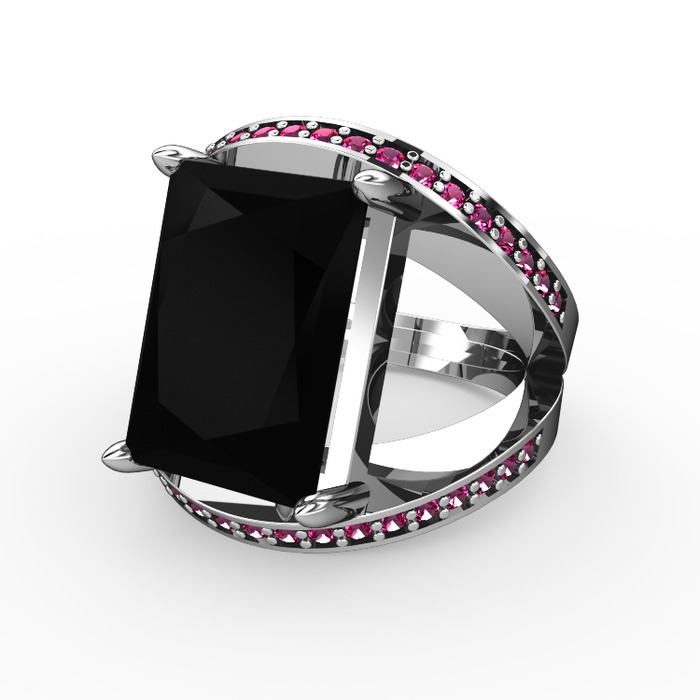 Siyah zirkon ve rodolit garnet 8 ayar beyaz altın yüzük