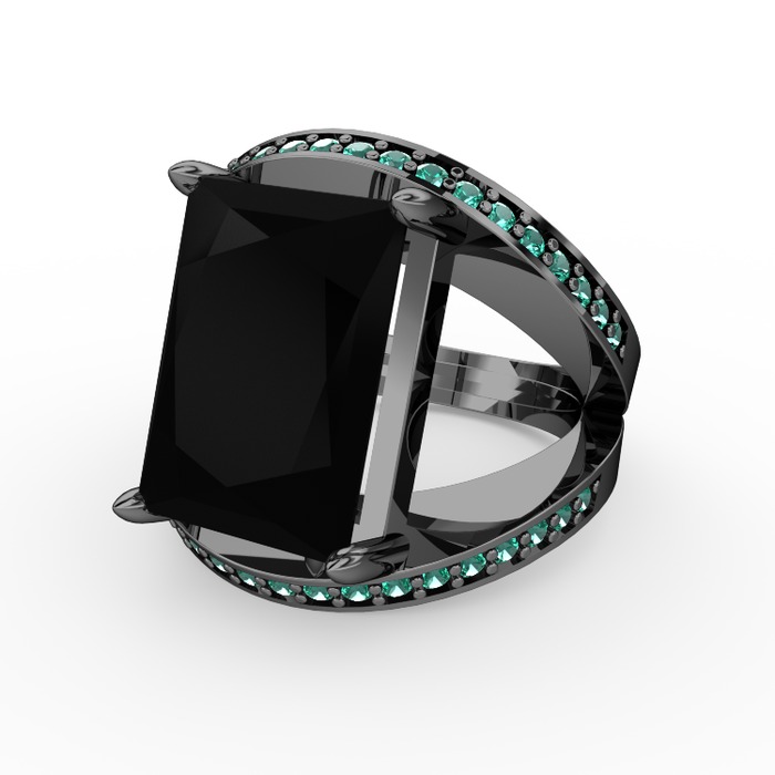 Siyah zirkon ve yeşil kuvars 925 ayar siyah rodyum kaplama gümüş yüzük