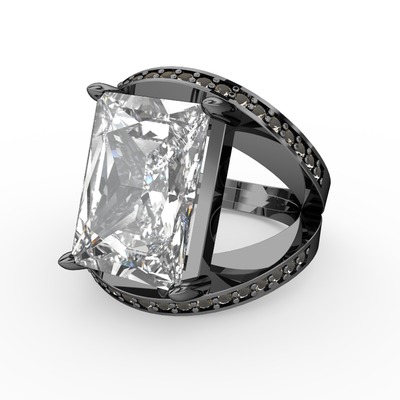 Swarovski ve dumanlı kuvars 925 ayar siyah rodyum kaplama gümüş yüzük