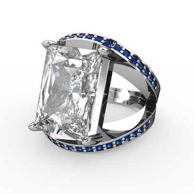 Swarovski ve lab safir 14 ayar beyaz altın yüzük