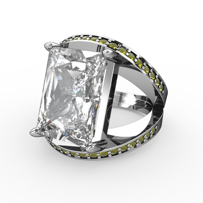 Swarovski ve peridot 8 ayar beyaz altın yüzük