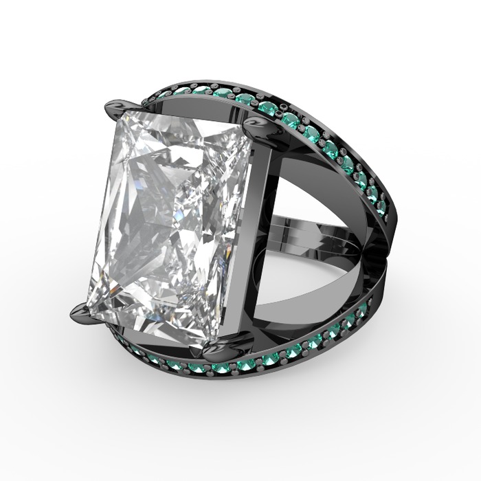 Swarovski ve yeşil kuvars 925 ayar siyah rodyum kaplama gümüş yüzük