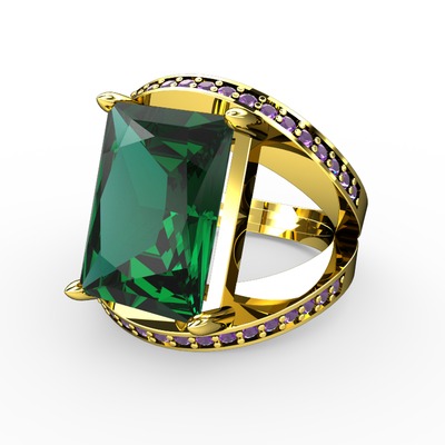 Yeşil kuvars ve ametist 8 ayar altın yüzük