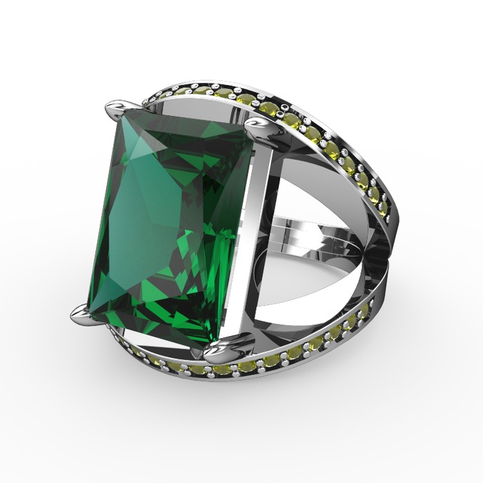Yeşil kuvars ve peridot 14 ayar beyaz altın yüzük