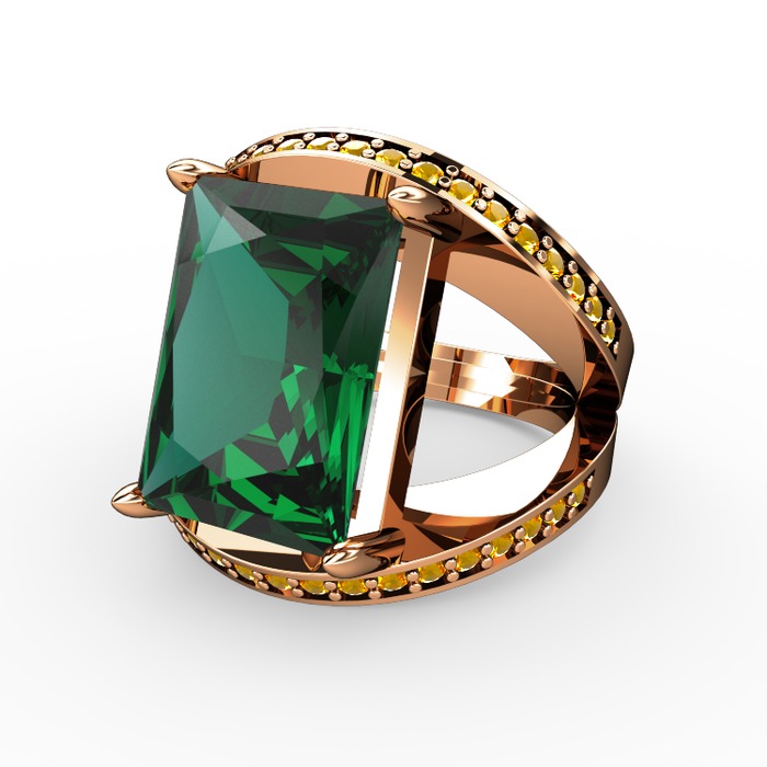 Yeşil kuvars ve sitrin 14 ayar rose altın yüzük