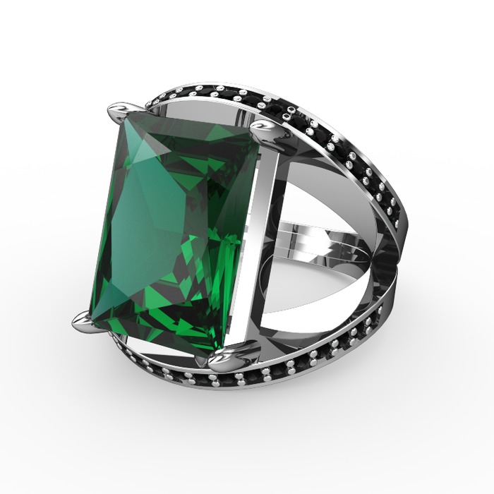 Yeşil kuvars ve siyah zirkon 18 ayar beyaz altın yüzük