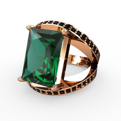 Yeşil kuvars ve siyah zirkon 18 ayar rose altın yüzük