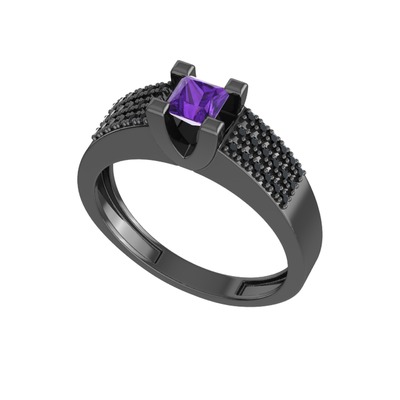Ametist ve siyah zirkon 925 ayar siyah rodyum kaplama gümüş yüzük