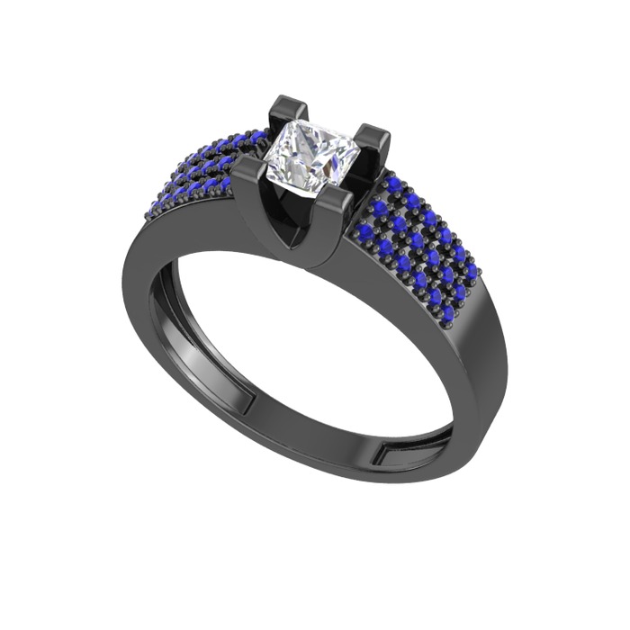 Beyaz zirkon ve lab safir 925 ayar siyah rodyum kaplama gümüş yüzük