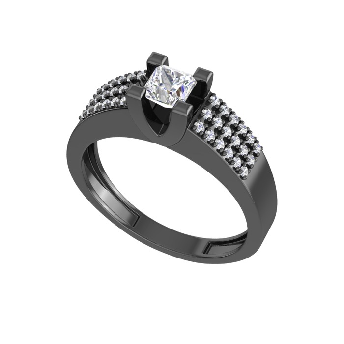 Beyaz zirkon ve pırlanta 925 ayar siyah rodyum kaplama gümüş yüzük (0.3168 karat)