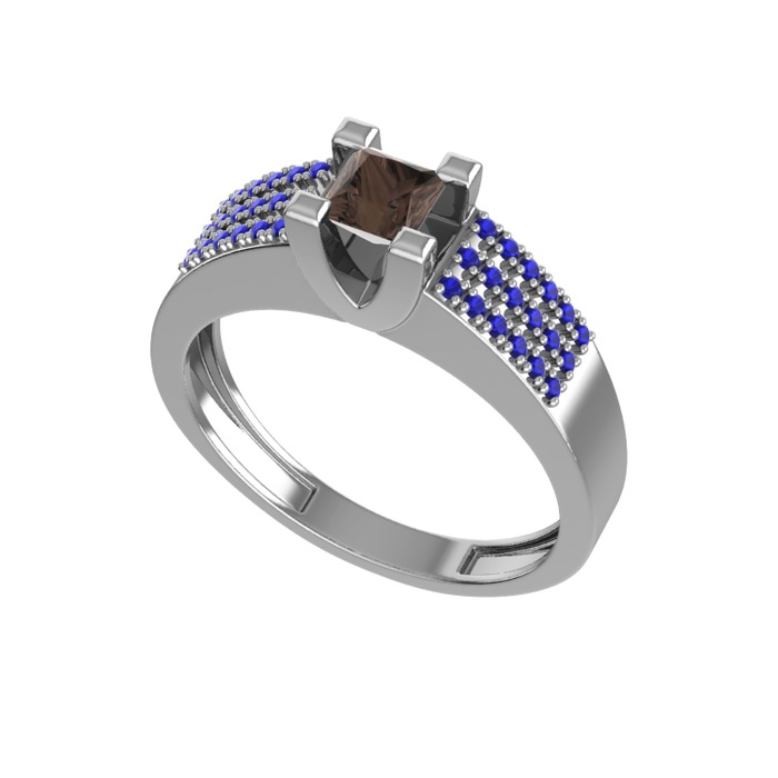 Dumanlı kuvars ve lab safir 18 ayar beyaz altın yüzük