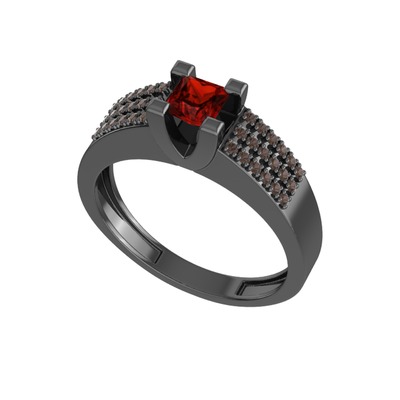 Garnet ve dumanlı kuvars 925 ayar siyah rodyum kaplama gümüş yüzük