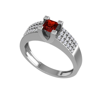 Garnet ve pırlanta 18 ayar beyaz altın yüzük (0.3168 karat)