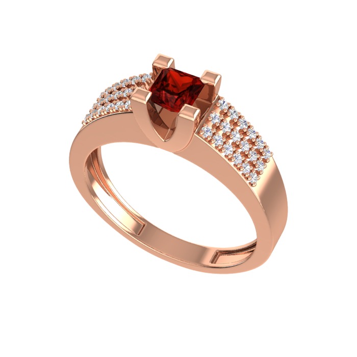Garnet ve swarovski 925 ayar rose altın kaplama gümüş yüzük