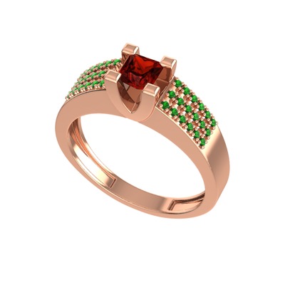 Garnet ve yeşil kuvars 14 ayar rose altın yüzük