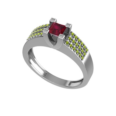 Kök yakut ve peridot 14 ayar beyaz altın yüzük