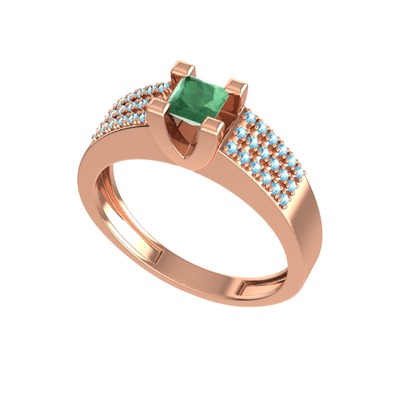 Kök zümrüt ve akuamarin 925 ayar rose altın kaplama gümüş yüzük