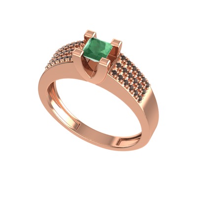 Kök zümrüt ve dumanlı kuvars 14 ayar rose altın yüzük