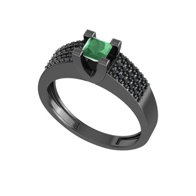 Kök zümrüt ve siyah zirkon 925 ayar siyah rodyum kaplama gümüş yüzük