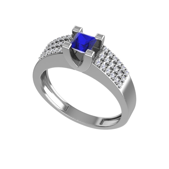 Lab safir ve pırlanta 8 ayar beyaz altın yüzük (0.3168 karat)