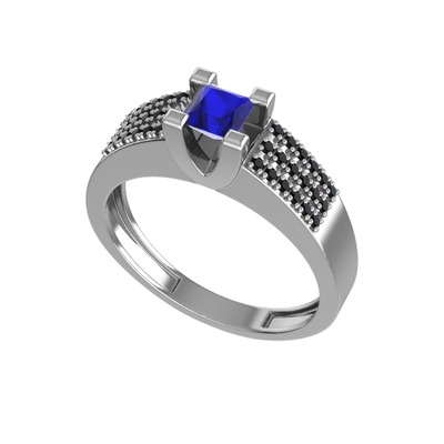 Lab safir ve siyah zirkon 8 ayar beyaz altın yüzük