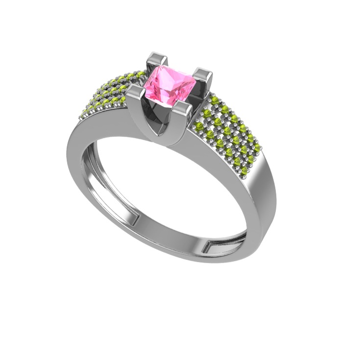 Pembe kuvars ve peridot 925 ayar gümüş yüzük
