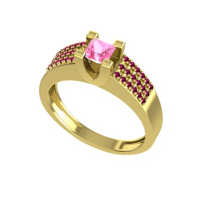 Pembe kuvars ve rodolit garnet 8 ayar altın yüzük