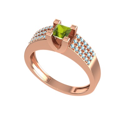 Peridot ve akuamarin 14 ayar rose altın yüzük