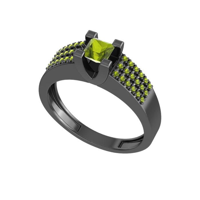 Peridot 925 ayar siyah rodyum kaplama gümüş yüzük
