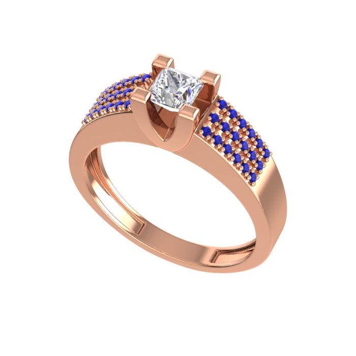 Pırlanta ve lab safir 18 ayar rose altın yüzük (0.71 karat)