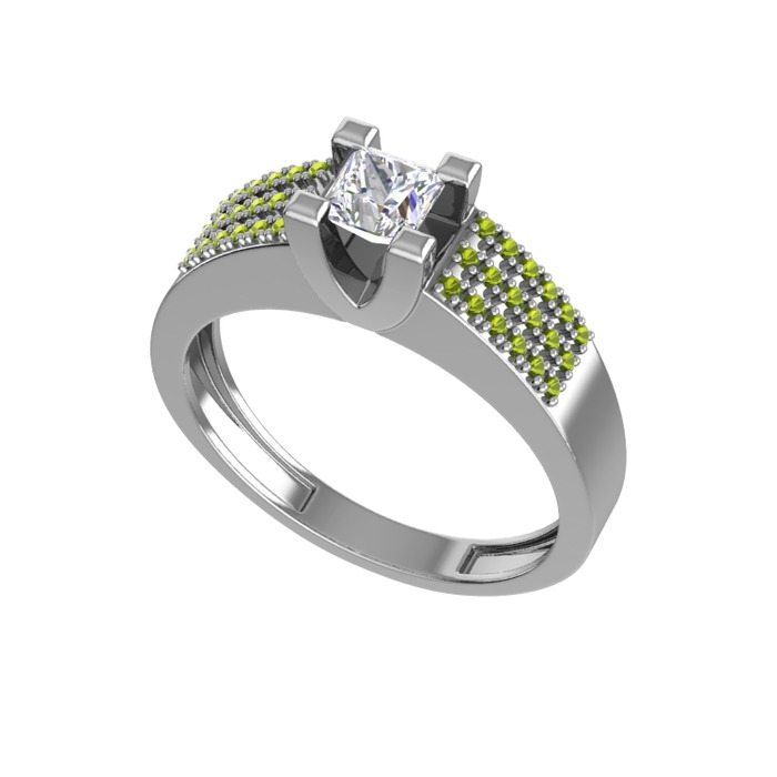 Pırlanta ve peridot 8 ayar beyaz altın yüzük (0.71 karat)