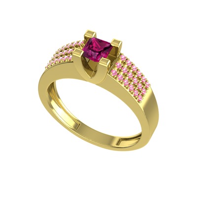 Rodolit garnet ve pembe kuvars 14 ayar altın yüzük
