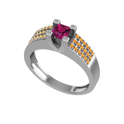 Rodolit garnet ve sitrin 18 ayar beyaz altın yüzük