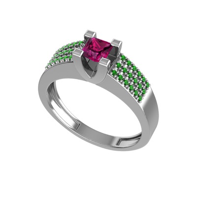 Rodolit garnet ve yeşil kuvars 925 ayar gümüş yüzük
