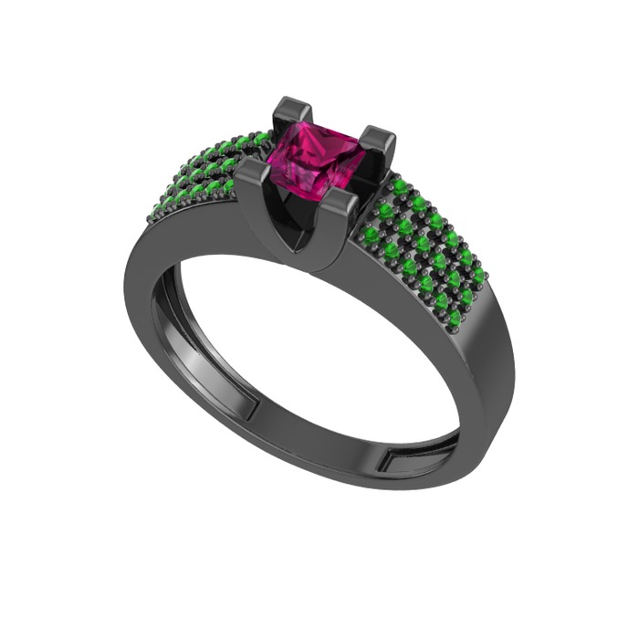 Rodolit garnet ve yeşil kuvars 925 ayar siyah rodyum kaplama gümüş yüzük