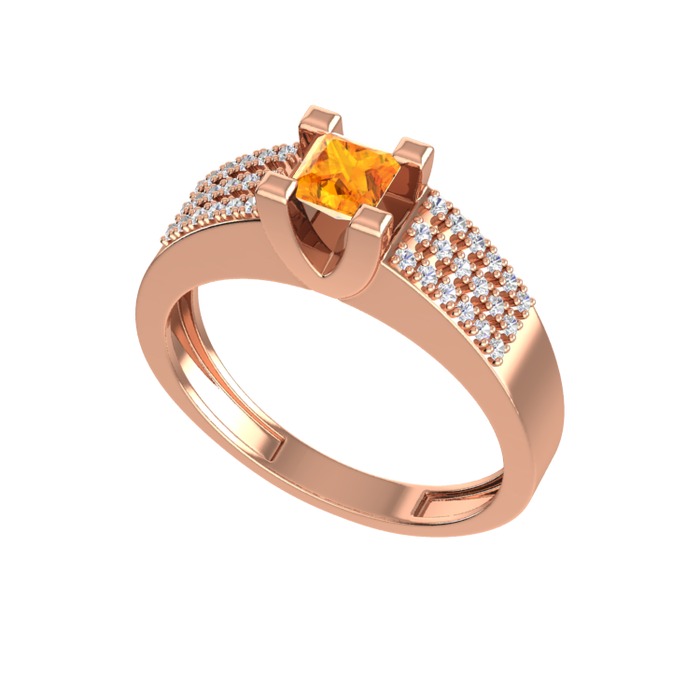 Sitrin ve beyaz zirkon 14 ayar rose altın yüzük