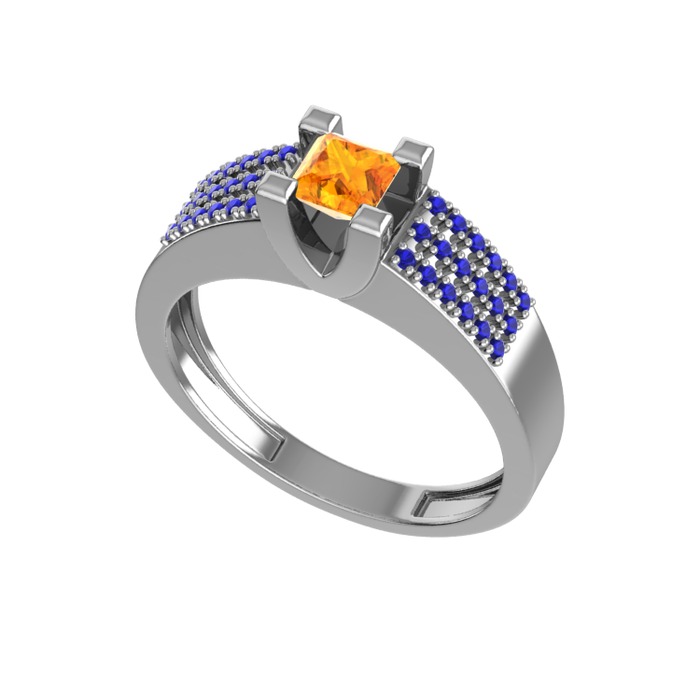 Sitrin ve lab safir 8 ayar beyaz altın yüzük