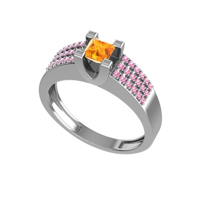 Sitrin ve pembe kuvars 18 ayar beyaz altın yüzük